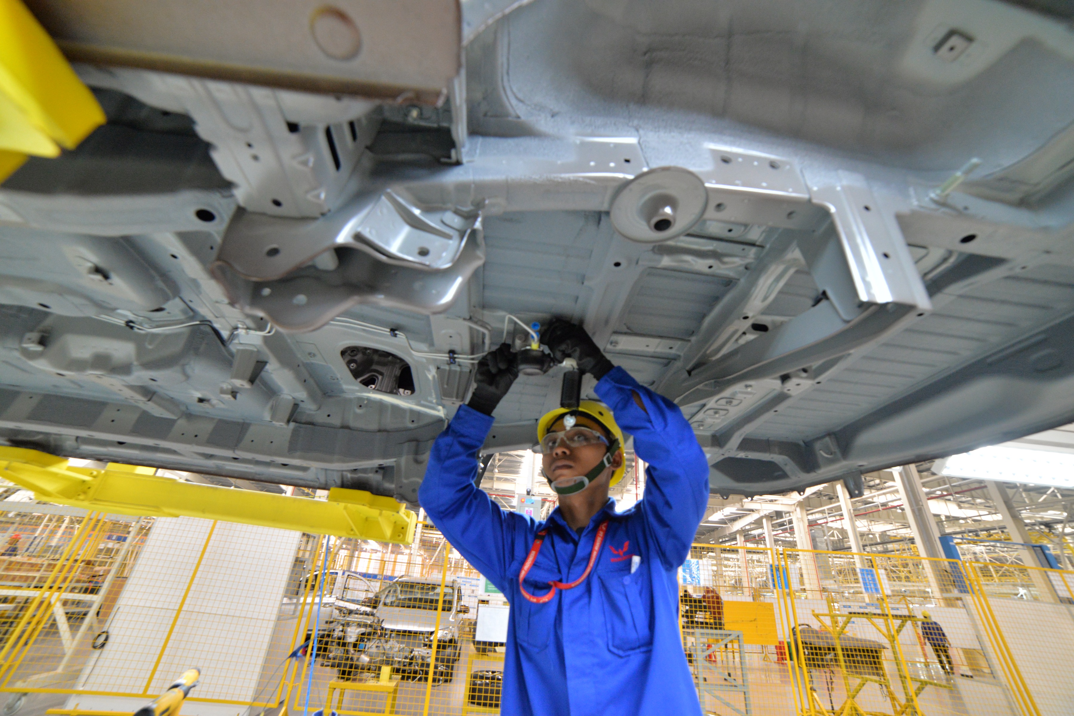 中新網(wǎng)7月12日電 7月11日,上汽通用五菱印尼汽車有限公司在印尼芝加朗正式投入運營,包括印尼、中國兩國有關(guān)官員以及上汽集團(tuán)董事長陳虹、通用汽車全球執(zhí)行副總裁錢惠康等企業(yè)領(lǐng)導(dǎo)和印尼當(dāng)?shù)亟?jīng)銷商、園區(qū)供應(yīng)商代表、企業(yè)員工等共同見證了印尼工廠首款產(chǎn)品——五菱Confero S下線。 2013年,上汽通用五菱股東方——上汽集團(tuán)積極響應(yīng)國家戰(zhàn)略,著眼于汽車行業(yè)全球化發(fā)展趨勢,提出了要建設(shè)成為"全球布局、跨國經(jīng)營,具有國際競爭力和品牌影響力的世界著名汽車公司"戰(zhàn)略目標(biāo)。在人口眾多、市場潛力巨大的東盟市場,繼成功建立泰國生產(chǎn)基地之后,上汽集團(tuán)又?jǐn)y手通用汽車進(jìn)軍東盟第一人口大國——印尼,打造右舵車生產(chǎn)基地。至此,五菱品牌在股東方的大力支持下正式走出國門,揚帆海外! |